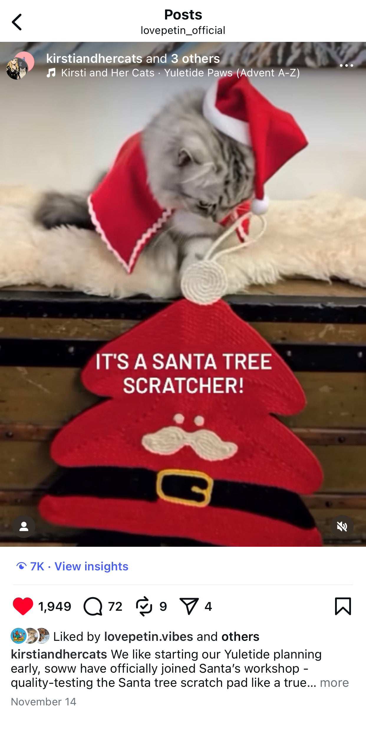 Missy rocking her Christmas outfit while going to town on the Santa scratcher 🎅🐱✨