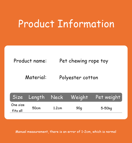 Description: Introducing our Interactive Chewing and Pulling Rope Toy, the perfect playtime companion for your canine companion! This durable and engaging toy is designed to provide hours of fun and exercise for your dog while promoting dental health and mental stimulation.