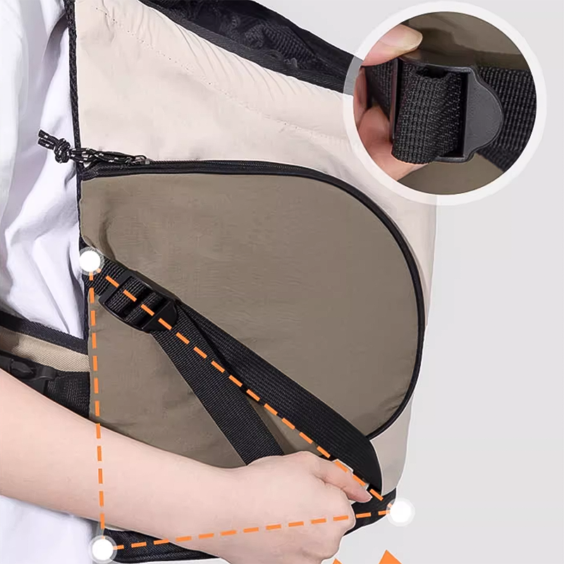 🛑 Safety First: The top anti-escape zipper facilitates easy access, while the side double webbing straps maintain the bag's shape. Additional safety features include a buckle, reflective zipper tape, and high-strength clasps for enhanced security.