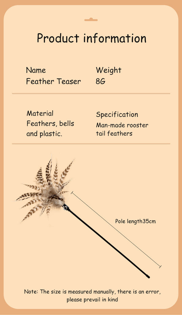 - Enticing Feathers: The cat teaser features enticing feathers that mimic natural prey, captivating your cat's hunting instincts and keeping them engaged for hours of playful fun.