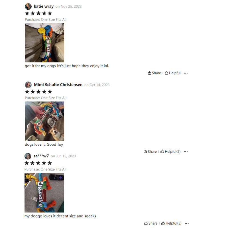 🐕 Robuster Seilknoten zum Kauen: Dieses Hundespielzeug aus Seil ist mit einem robusten Seilknoten ausgestattet und eignet sich perfekt für Hunde, die zum Kauen neigen. Es fördert eine gesunde Zahnpflege und ermöglicht ausgiebiges Spielen.