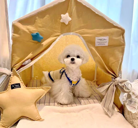 🔥Bring Familiar Items: Pack your dog's favorite blanket, toys, and bedding to make the dog tent feel more like home. Familiar scents and objects can help your dog feel secure in a new environment.