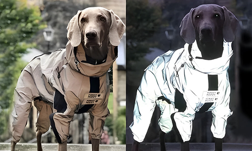 ✨ Ultimative Sichtbarkeit bei Nacht : Verwandeln Sie Ihren Welpen mit dem wasserdichten Hunderegenmantel in ein Leuchtfeuer der Sicherheit . Er verfügt über ein ganzkörperreflektierendes Laserdesign, das unübertroffene Sichtbarkeit bei nächtlichen Abenteuern gewährleistet.