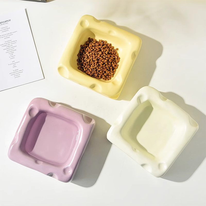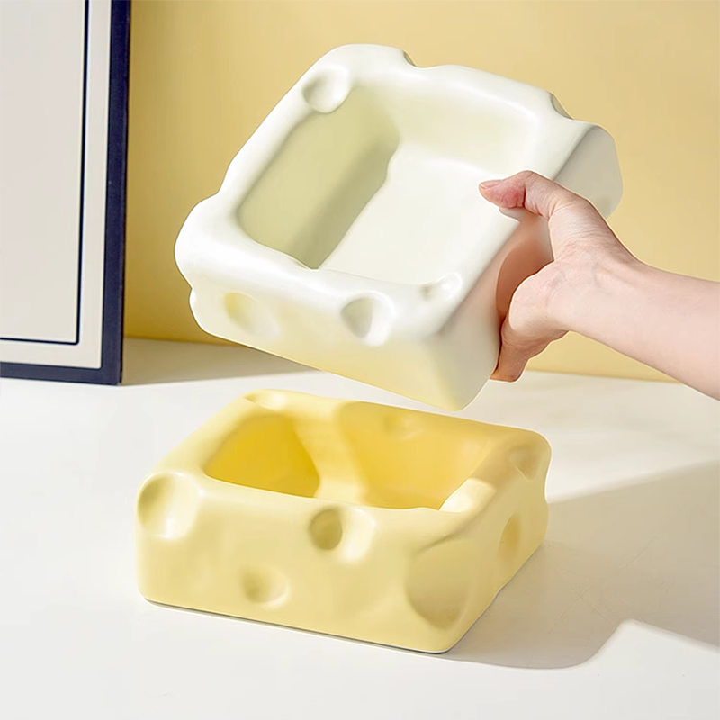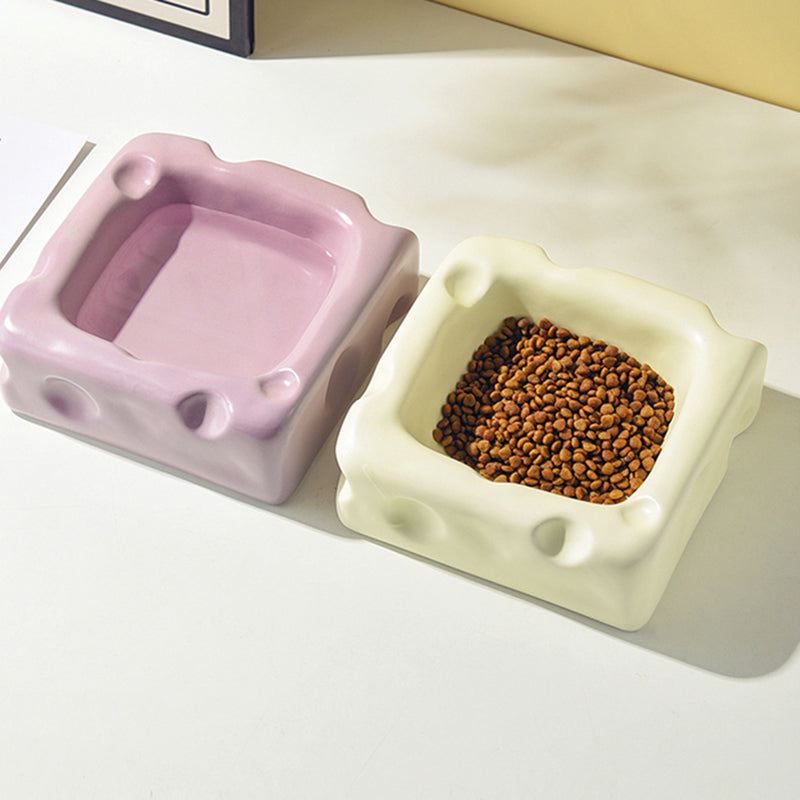 🧀 Kreative Käseform: Erfreuen Sie sich an dem innovativen Design dieses Keramik-Futternapfes in der bezaubernden Form eines Käseblocks. Das quadratische Design mit breiter Öffnung sorgt für Stabilität und Benutzerfreundlichkeit.