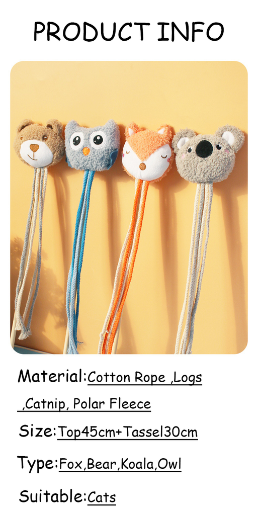- Holzgriffstab: Das Katzenspielzeug verfügt über einen stabilen Holzgriffstab, der bequem zu greifen ist und Ihnen die Bewegung des Plüschspielzeugs während des Spielens leicht steuern lässt.