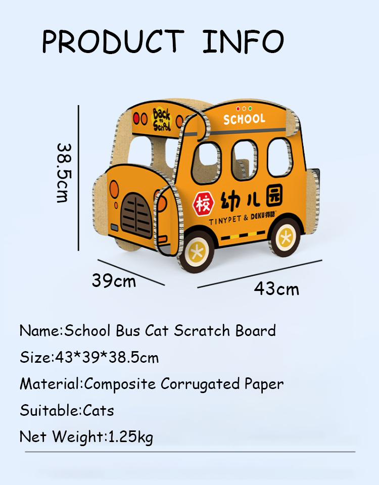 🚌 Schulbus-Design: Unser Katzenkratzbrett verfügt über ein bezauberndes Schulbus-Design, das ein spielerisches Element in die Kratz- und Spielroutine Ihrer Katze bringt.