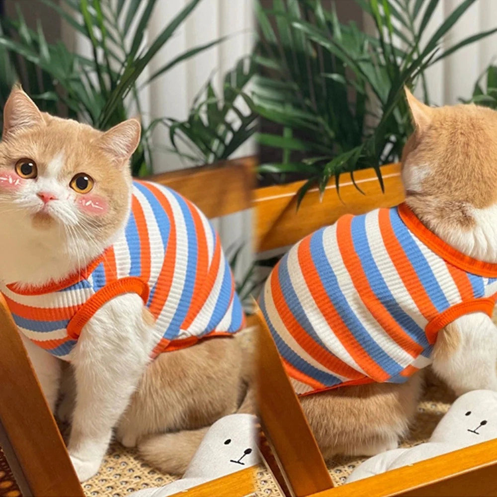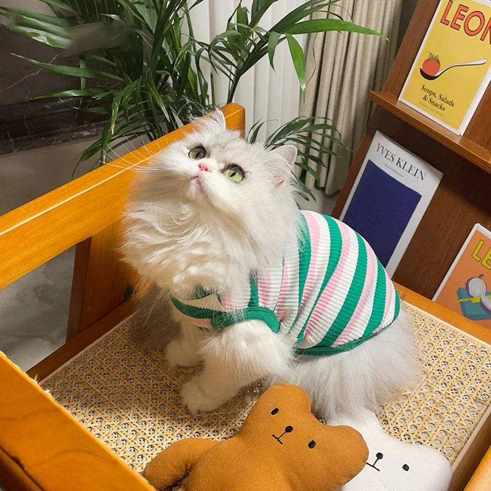 ✨ Timeless Charm: Dress your timeless companion in the Classic Three-Color Stripe Cat T-Shirt, a chic and enduring choice that brings timeless charm to your feline's wardrobe!
