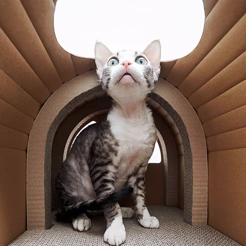 🏰 Spacious Interior: No cramped spaces! Even the most voluptuous cats can effortlessly enter and revel in the expansive interior of our cat scratcher.