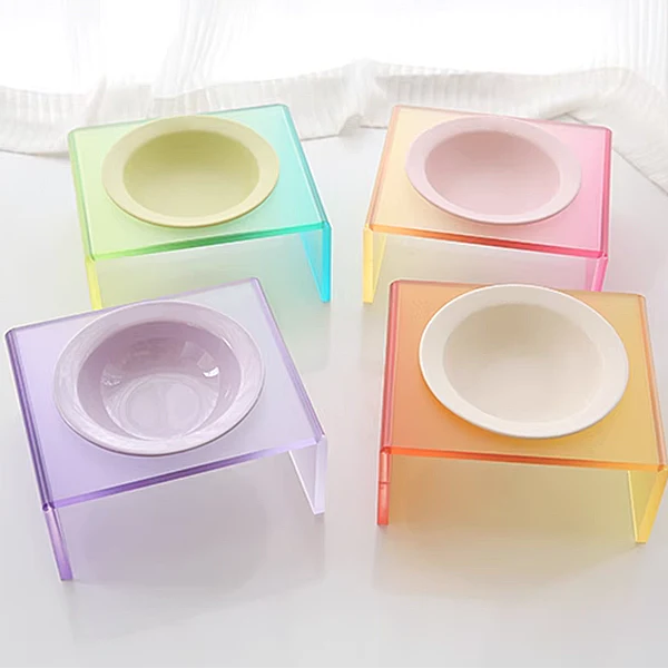 😻Quality Craftsmanship: Crafted from premium porcelain, our pet bowls with stand not only showcase the enchanting rainbow hues but also contribute to reducing the risk of black chin syndrome. Your cat's dining experience is elevated, providing a reassuring and stylish feast.