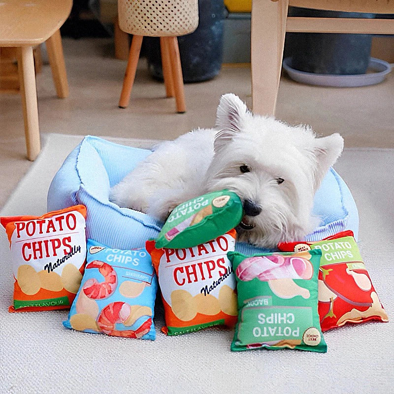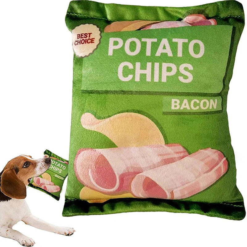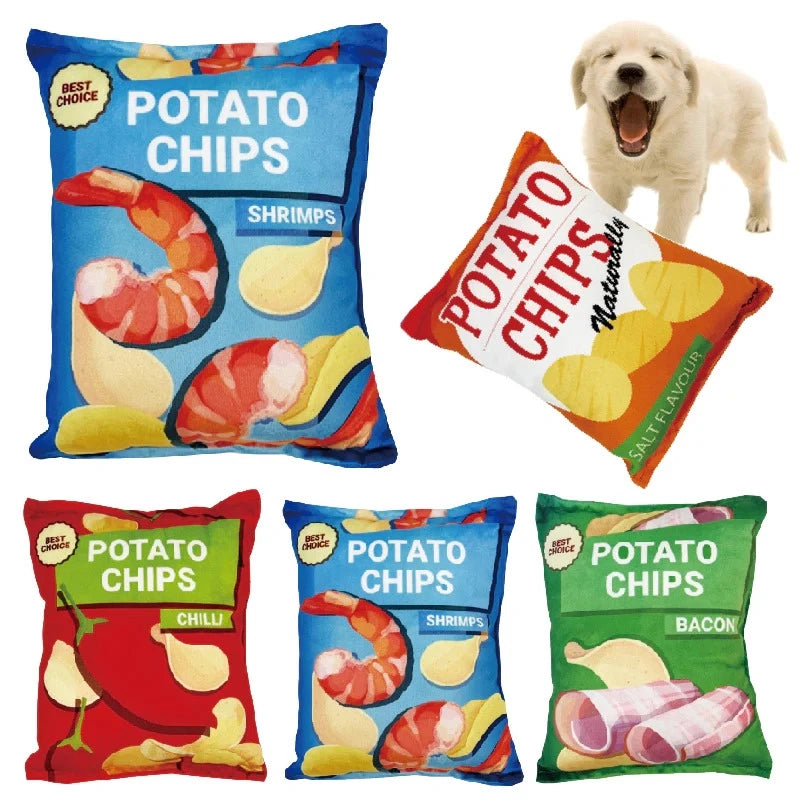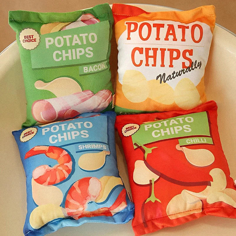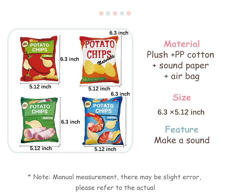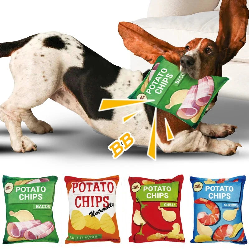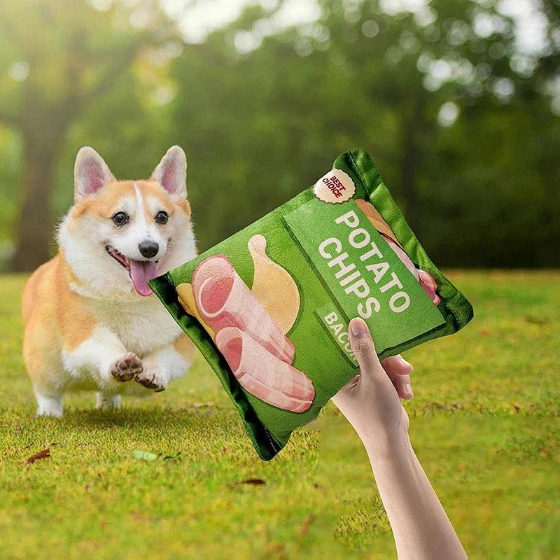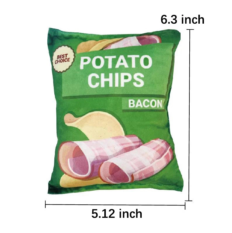 🥩 Soft and Cuddly: Our plush potato chip dog toy, a perfect match for dog toys chew, is crafted from ultra-soft plush, ensuring a cuddly and comforting experience for your furry friend during play and rest.